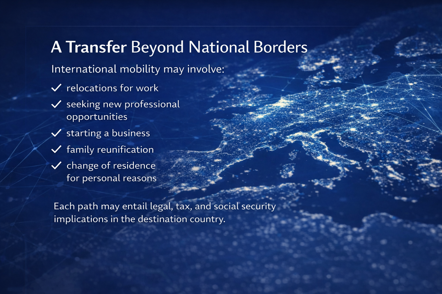 Every choice — professional, entrepreneurial or personal — can have effects in the country of origin and the destination country. A correct understanding of the applicable legal framework is an essential element for planning a structured and sustainable mobility process.